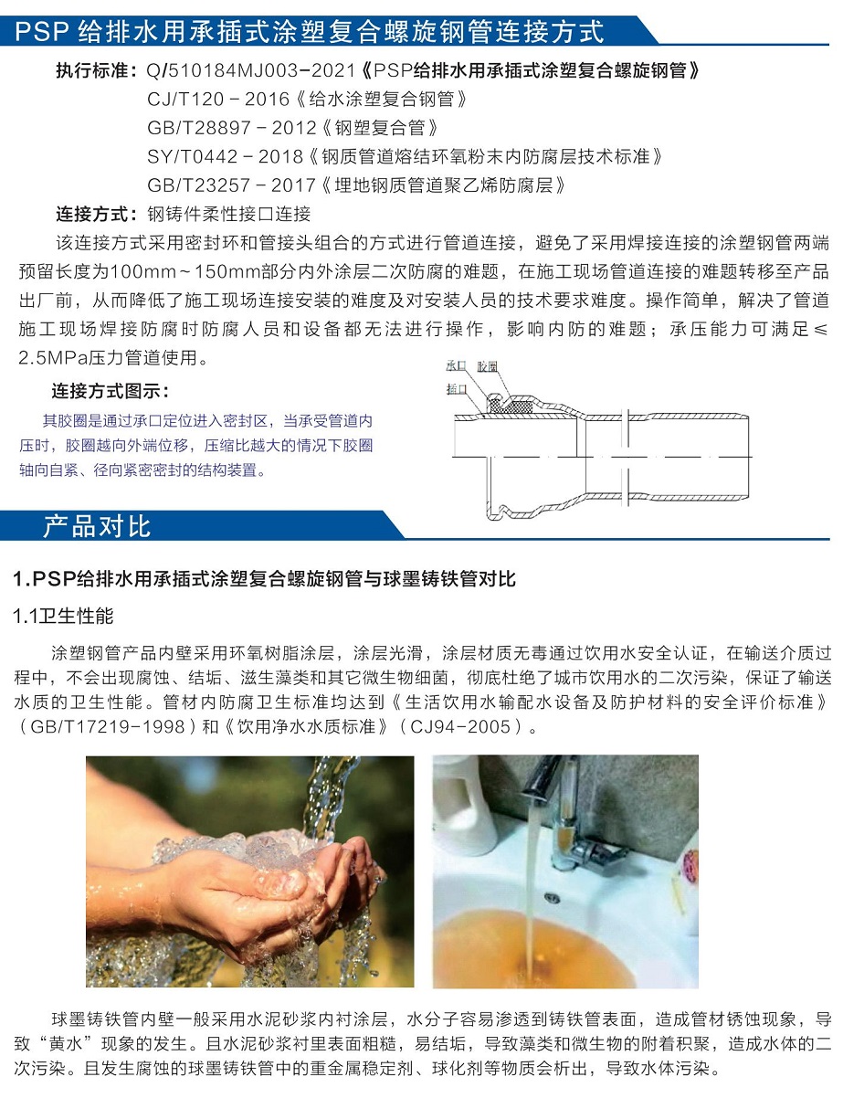PSP给排水用承插式涂塑复合螺旋钢管