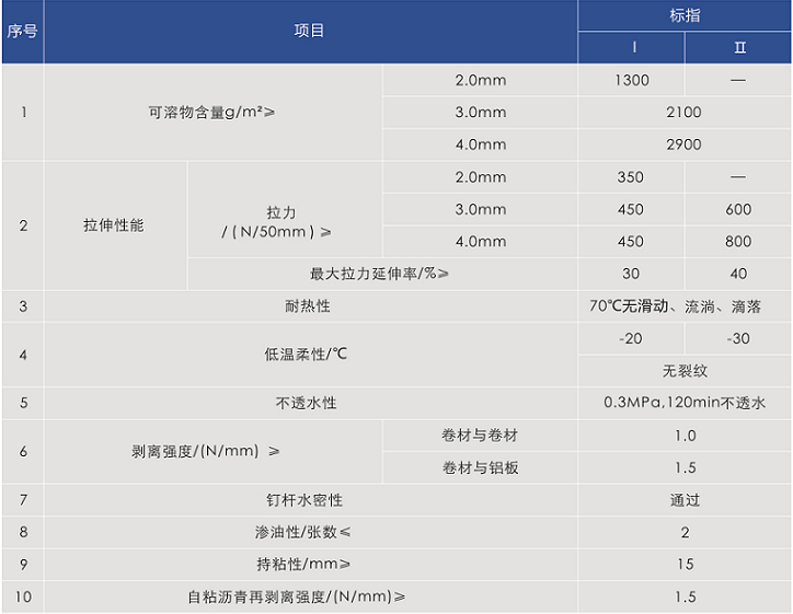 无胎N类卷材物理力学性能:物理性能表(GB23441-2009)